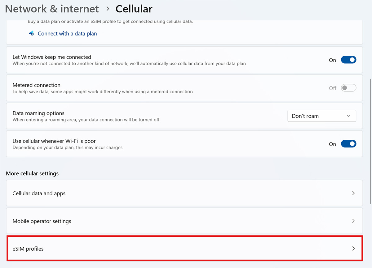 - Use this SIM for cellular data: “eSIM”.