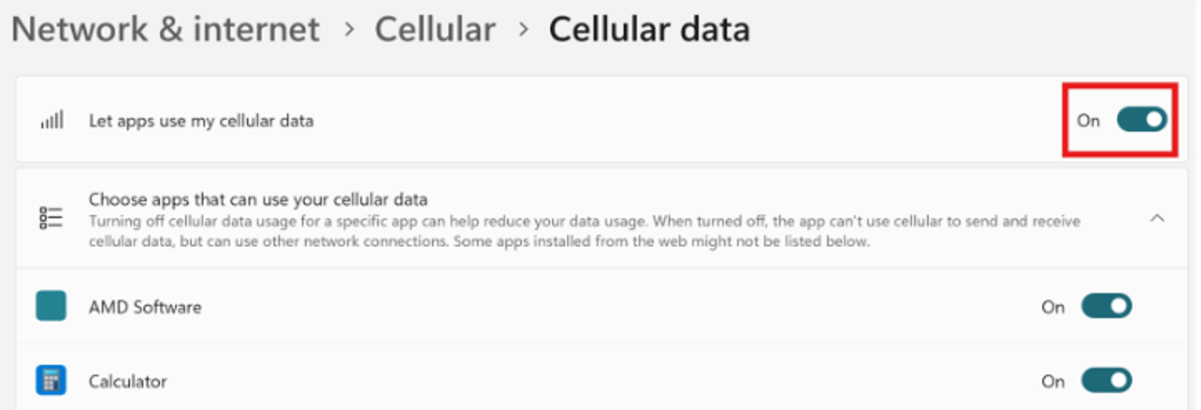 - Toggle “Let apps use my cellular data” to “On” to ensure all applications have necessary access to data.