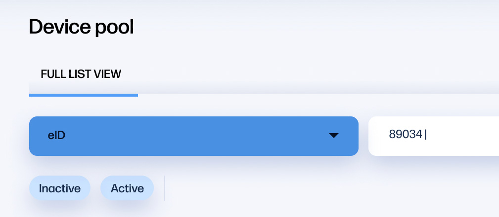 2. Enter the name or the eID of the SIM Card that is not working into the Filter