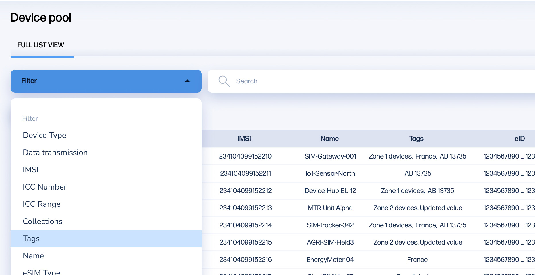 Tags make it easier to group, filter, and search SIM cards. A SIM card can have multiple tags.